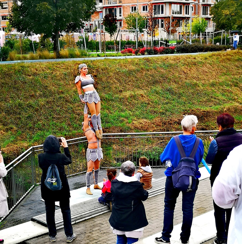 A rendezvény méltó zárásaként pedig kerületünk artista házaspára adott elő egy cirkuszban is csak különleges alkalmakkor látható kiváló műsort. Majd az artisták átvezették a vállalkozókedvű embereket a Mosolyok hídjához, ahol felállítottuk az egy időben a legtöbben egyszerre mosolygók helyi rekordját.
