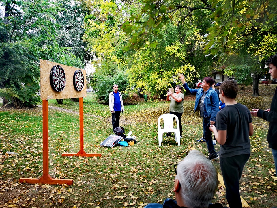 A másik oldalon az Angyalföldi Természetbarát és Testedző Egyesület felvonultatott hat különböző és különleges sportolási lehetőséget, mint Kubb, ground golf, vagy petanque.