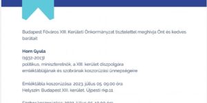 Az 1932. július 5-én született Horn Gyula, kerületünk díszpolgára emléktáblájánál (9 órakor), majd szobánál (10 óra) koszorúzást rendeznek.