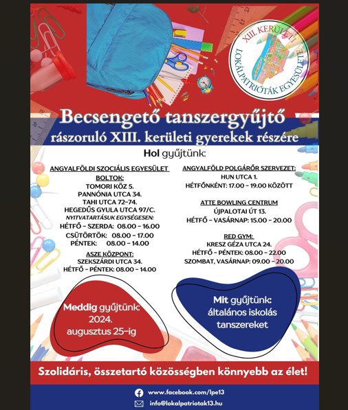 Bár a szeptember még elég távolinak tűnik, gyorsan elrohan a nyári időszak és jónéhány kerületi család kéztördelve néz az iskolakezdés elé. Ezért hagyományainkhoz híven idén is Becsengető Tanszergyűjtő akciót szervezünk. …