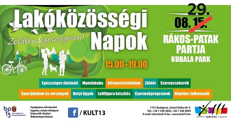 Időpontváltozás! Augusztus 29-én tartják a következő Lakóközösségi Napot!A harmadfokú hőségriadó miatt biztonságosabbnak ítélte meg a szervező két héttel arrébb tenni a következő lakóközösségi napot. Ezért legközelebb augusztus 29-én, csütörtökön 15.00 …