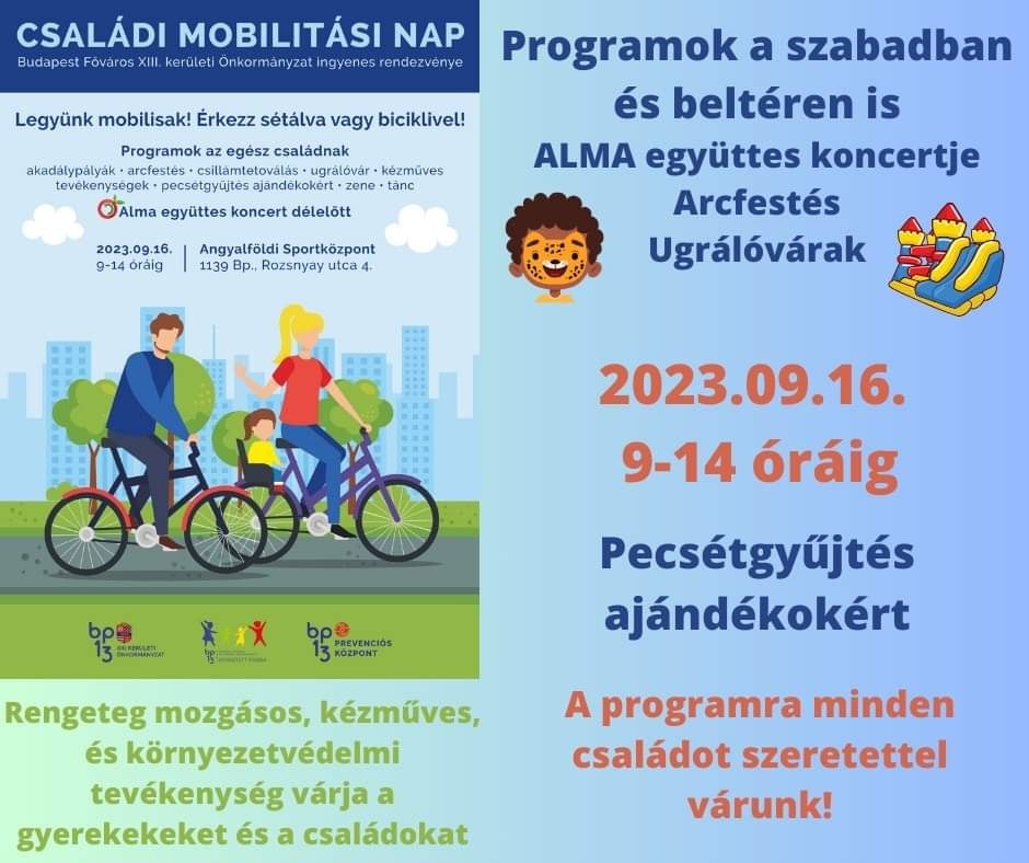Családi Mobilitási Nappal várják a családokat és más sportolni vágyókat az Angyalföldi Sportközpontban szombaton 9 órától.A Rozsnyay utca 4. alatt a gyerekek és családjaik ingyenes sportos, környezetvédelmi és kézműves programokon …