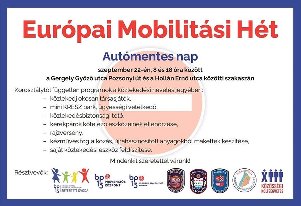 Lakótársaink javasolták a kerületi közösségi költségvetésen és szavazataik hatására valósulhat meg az Autómentes nap különleges helyszínen. Időpont: 2023. szeptember 22., péntek 08.00-18.00Helyszín: Pozsonyi út – Gergely Győző utca és Hollán …