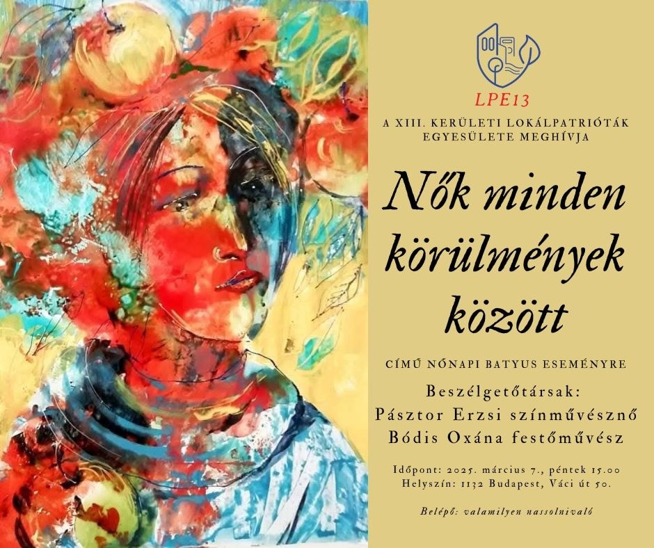 Nőnap alkalmából a 15 éves egyesületünk arra gondolt, hogy szakítva a hagyományokkal egy belsőséges beszélgetésre hívja női tagjait „Nők minden körülmények között” címmel. Ebben segítségünkre volt a két művészkiválóság: Pásztor …